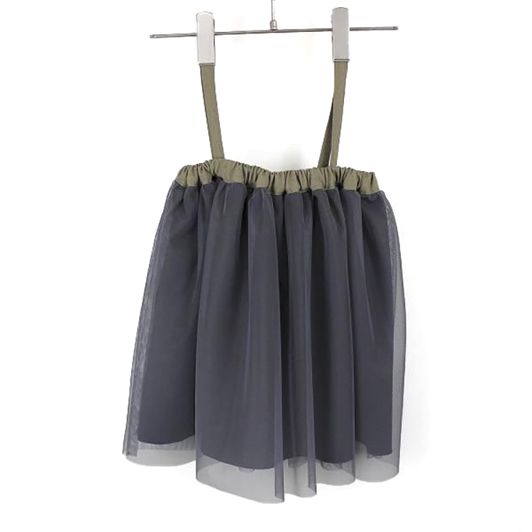 【2025年 秋冬新作商品】キャミとしてもスカートとしても2WAY使用できるチュール×杢ツイルのスカート。リブニット。パンツなどと重ねて、キャミとして使っても華やか。裏返して杢ツイル側の上品な雰囲気を楽しむこともできます。肩紐はボタンで長さ調節可能・取り外し可能です。キッズサイズのみ。          ★クロネコゆうパケット指定不可