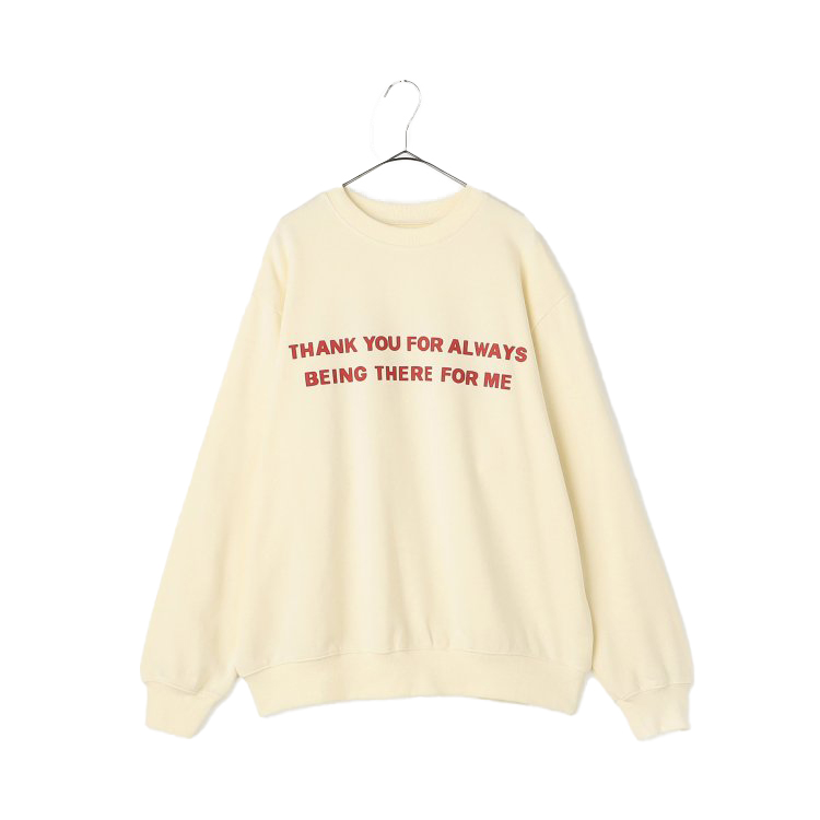 【ブランド:p.premier】【2025年 秋新作商品】柔らかいコットン裏毛素材使用のトレーナー。肌触りも良く、着心地バツグン。前身頃には「いつもそばにいてくれてありがとう」・後身頃には「こんなにたのしかったことをわすれたくない」とありがとうのメッセージをデザイン。ご家族お揃いにオススメ。大人サイズのみ。  ★クロネコゆうパケット指定不可