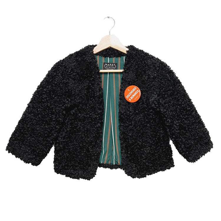 【2025年 秋冬新作商品】なにこれ?なユニークなフリル生地を使った個性的なボレロ。「思いがけない幸運を発見!」の意味のバッチ付き。ボロボロアイテムに合わせて欲しい一品。大人サイズのみ。★クロネコゆうパケット指定不可