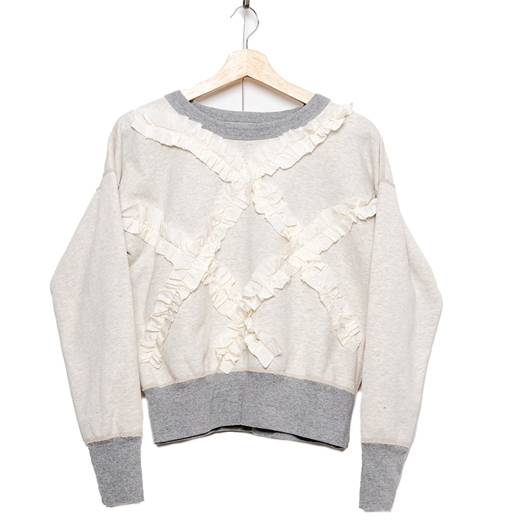 【2025年 秋冬新作商品】ステッチ使いとシルエット、ビンテージディテイールと色褪せがリアルなシンプルコンパクトシルエットにフリルを盛り付けたスエット。大人サイズのみ。        ★クロネコゆうパケット指定不可