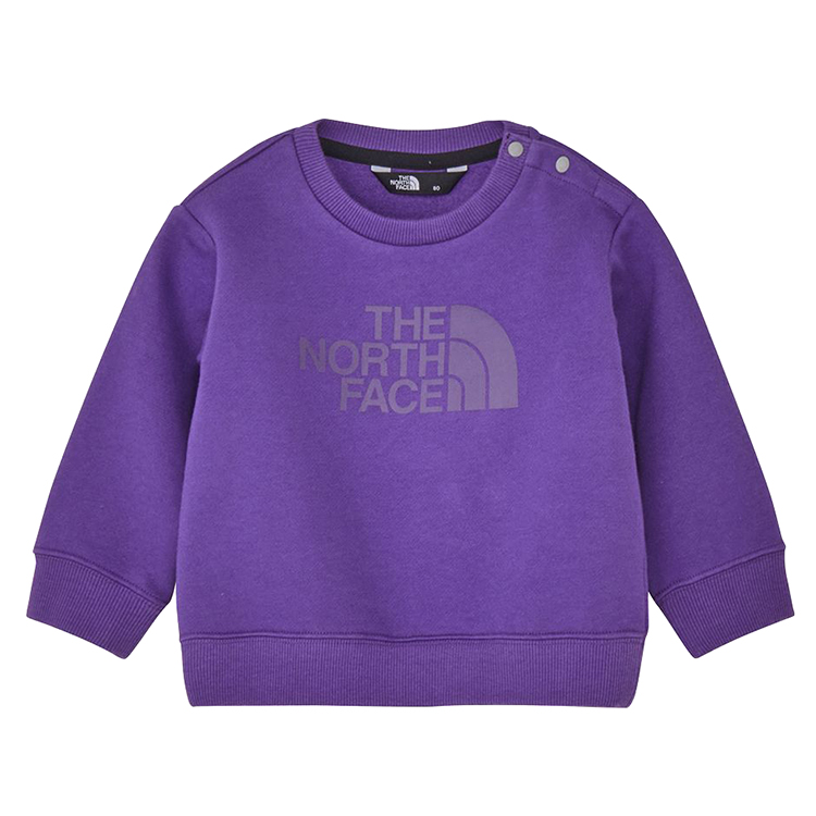 【2025年 秋冬新作商品】フロントに THE NORTH FACEのロゴをあしらったスウェットクルーのベビーモデル。コットンとポリエステルを混紡した裏起毛の厚手スウェット地を採用。脱ぎ着がしやすいよう、左肩ドットボタン仕様です。ベビーサイズのみ。   ★クロネコゆうパケット指定不可