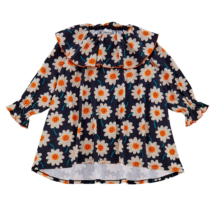 【2025年 秋冬新作商品】柔らか天竺素材使用のワンピース。肌触りも良く、着心地バツグン。手書きのようなラフさが可愛い花柄デザイン。歩くたびにふわふわ揺れる、後ろ下がりなシルエット。ネック周りは着脱簡単なゴム仕様。ベビー・キッズサイズのみ。  ★クロネコゆうパケット指定不可