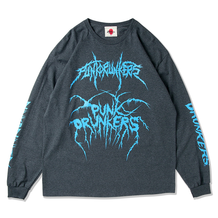 【2025年 秋冬新作商品】メタルなロゴがたくさんプリントされたロンTEE。ハードに着こなせ!!大人サイズのみ。       ★クロネコゆうパケット指定不可