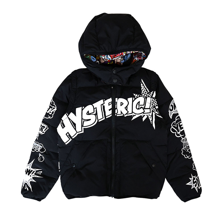 【2025年 秋冬新作商品】リバーシブルなのはもちろんフードや袖も外せてすっきりシルエットのベストにもなれちゃうAMAZING COMICS総柄のマルチプレイヤーのアウターが登場。ブラックの面には大胆に大きなグラフィックがデザインされていて総柄面は光沢感のある表面感がキレイな1枚に仕上がっています。コーデの主役クラスのアウター!キッズサイズのみ。           ★クロネコゆうパケット指定不可