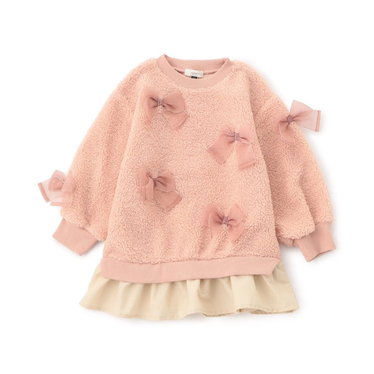 【ブランド:Seraph】【2025年 秋新作商品】柔らかいボア素材使用のワンピース。肌触りも良く、着心地バツグン。ふわふわボアにたくさんのリボンが可愛すぎる!女の子らしいデザイン。袖口はリブ仕様。通園・通学等デイリーにもオススメ。ベビー・キッズサイズのみ。                         ★クロネコゆうパケット指定不可