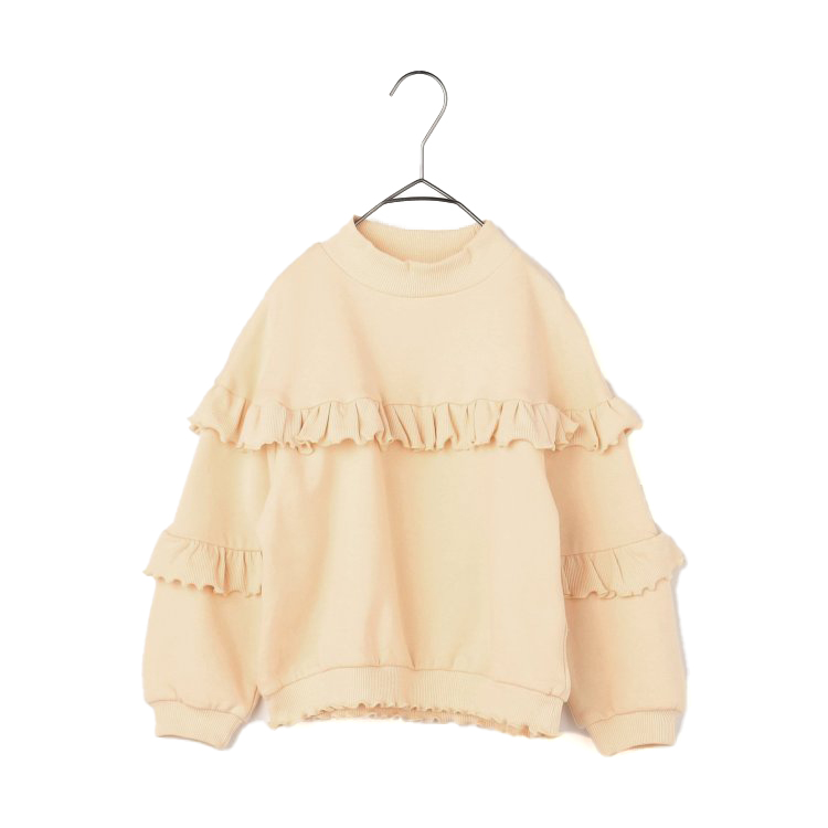【ブランド:p.premier】【2025年 新作商品】綿100%の裏起毛生地使用のトレーナー。肌触りも良く、着心地バツグン。フリルデザインが可愛い。綿100%なので、たくさん着ても毛玉になりにくく、お手入れしやすいのもポイント。モックネックデザインで首まわりを冷やさず着用いただけます。ベビー・キッズサイズのみ。 ★クロネコゆうパケット指定不可