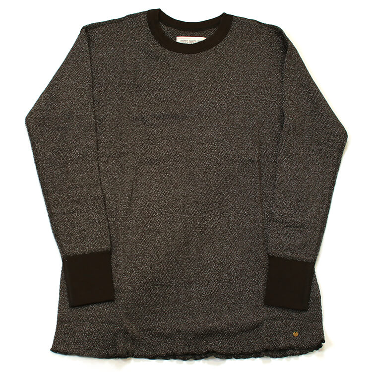 【2025年 秋冬新作商品】定番のラメサーマルのインナーから、身幅を少しゆったりと。着丈もインナーとして仕込んでも裾からチラッと覗く程度の長さにマイナーチェンジしました。裾にフリッとしたデザインを追加。シンプルなスタイリングにも、ちょっぴり乙女な雰囲気をプラスしてくれます。大人サイズのみ。       ★クロネコゆうパケット指定不可