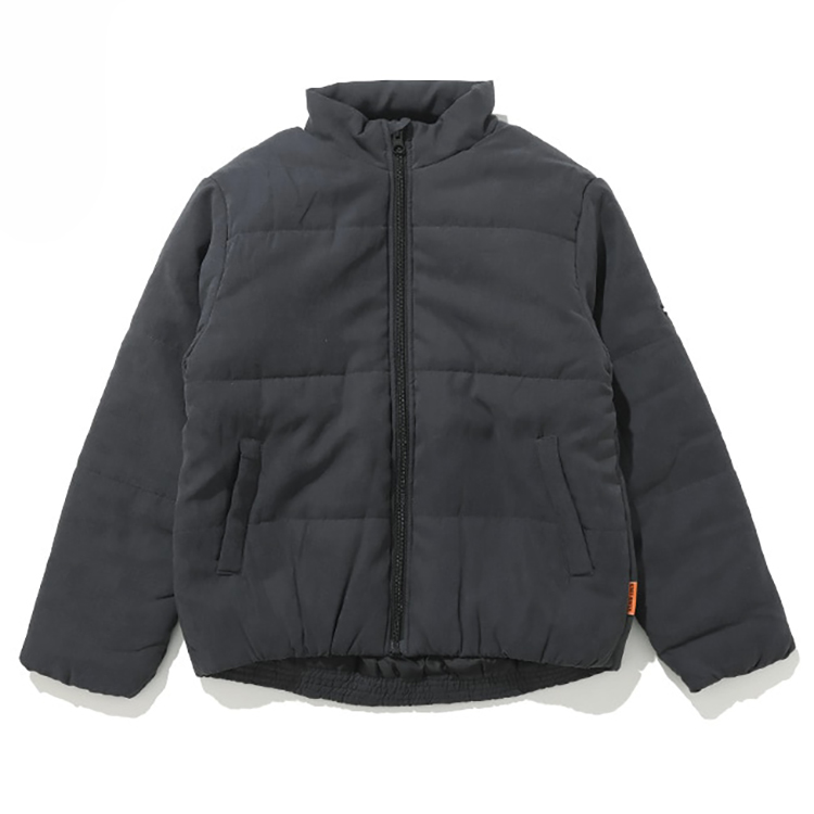 【2025年 秋冬新作商品】シャカシャカ音がしにくい、起毛感のあるやさしい風合いの生地を使った中綿ジャケット。背中にカーブをつけ、内側にギャザーを寄せることで、丸みのあるシルエットに。動きやすく、見た目も柔らかく可愛らしい印象です。フードなしのスタンドネック仕様で首元がスッキリ見えます。キッズ・ジュニアサイズのみ。                        ★クロネコゆうパケット指定不可
