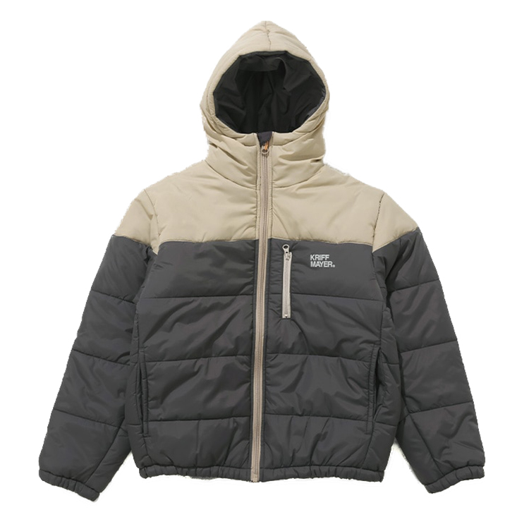 【2025年 秋冬新作商品】「テクノロジーで暖かさを極めたい」をコンセプトに、機能素材を使用した中綿ジャケット。表地は軽い撥水加工が施されており、雨や雪を弾いて衣服の中まで濡れにくい設計。裏地には保温素材を採用しており、寒い日でもしっかりと暖かさをキープします。さらに、首元をしっかり包む高めのネックデザインで、冷たい風や雨の侵入を防ぎます。寒さが厳しい日でも安心して着ていただける、冬の頼れるアイテム。キッズ・ジュニアサイズのみ。                          ★クロネコゆうパケット指定不可