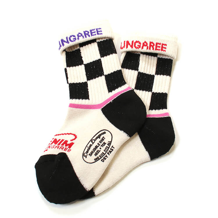 【2026年 春夏新作商品】ブロックチェック柄が目をひく、遊び心あるデザインソックス。カラフルな配色に。履き口のカラーとロゴがアクセント。足元からコーデを楽しく演出。ほどい厚みのある編み立てで、足に優しくフィット。かかとやつま先は配色切り替え仕様で、デザイン性と実用性を兼ね備えています。デイリー使いはもちろん、スタイリングのポイントとしても活躍。        ★この商品 2点のみならクロネコゆうパケット指定 OK(3点以上&複数注文指定不可)