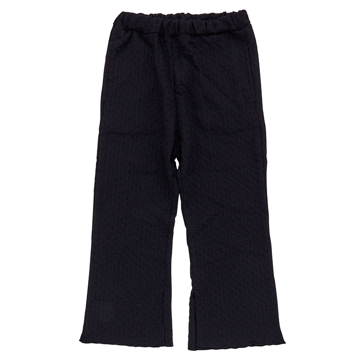 【2026年 新作商品】ジャガード生地使用のフレアパンツ。内側裾のスリットが歩くたびに動き、綺麗なシルエットを演出します。足元はスッキリ。ウエストフロントは、ゴム仕様。ベビー・キッズサイズのみ。                         ★クロネコゆうパケット指定不可