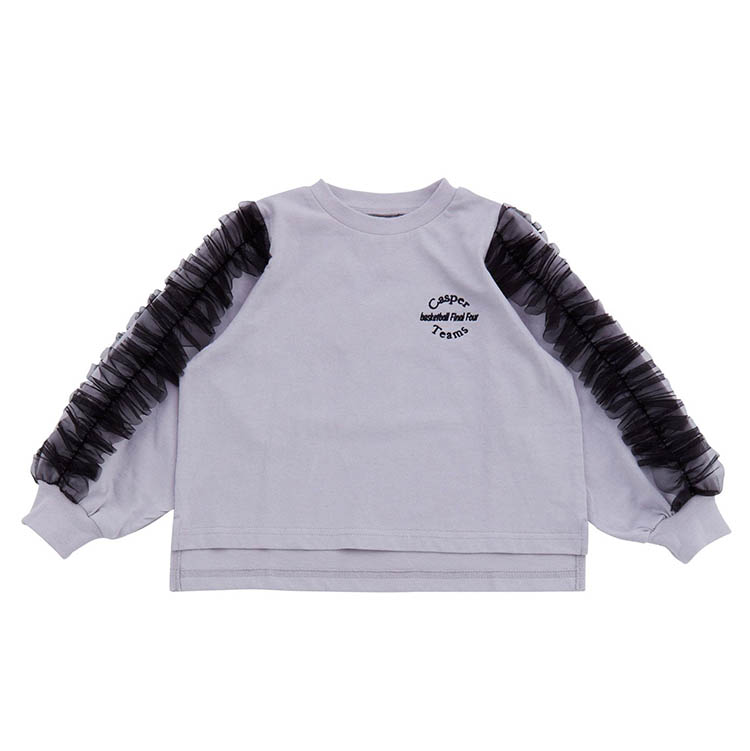 • 素材 : 本体:綿100%、袖チュール:ナイロン100%、リブ部分:綿95%、ポリウレタン5%