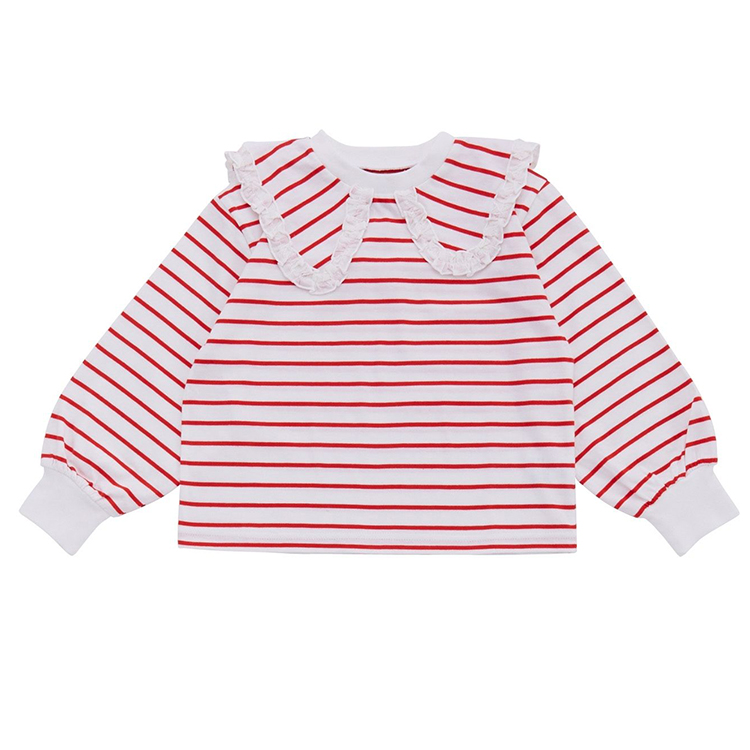 【2026年 新作商品】柔らかいコットン素材使用の Tシャツ。肌触りも良く、着心地バツグン。マリンムード漂うセーラー衿に。フリルをあしらったガーリーなデザイン。ふんわりとした袖のシルエットが、優しい印象をプラス。ベビー・キッズサイズのみ。    ★クロネコゆうパケット指定不可