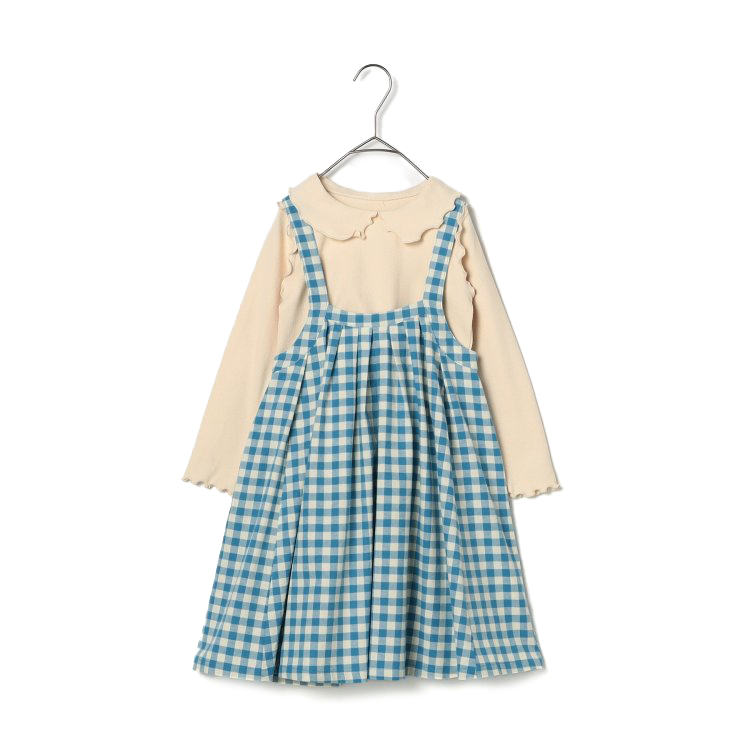 ギンガムチェックジャンスカ & メロウトップスセット (ブルー)