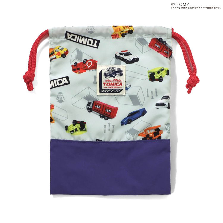 【ブランド:BREEZE】【2026年 春新作商品】大人気「TOMICA」とのコラボアイテム。はたらく車や人気車種の総柄デザインの巾着。持ち物もお気に入りアイテムで気分もあがります。同じデザインの巾着(Lサイズ)もあります。       ★この商品 1点のみならクロネコゆうパケット指定 OK(複数注文指定不可)