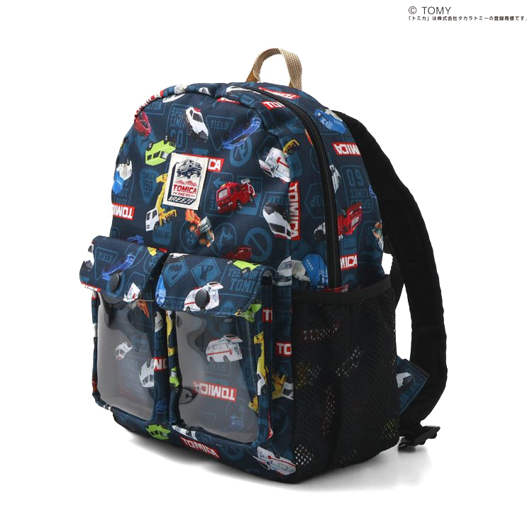 【ブランド:BREEZE】【2026年 春新作商品】大人気 TOMICAとのコラボアイテム。はたらく車や人気車種の総柄デザインの龍区が登場。デザインがかわいいだけでなく、機能性もバツグン。リュックの入り口が大きく開くので荷物の出し入れがしやすい。内側にネームカードがいれられます。お弁当転倒防止のお弁当バンド付き。チェストベルト付きでズレ落ち防止。表のポケットはクリアになっていてお気に入りのアイテムが入れられます。サイドのポケットには飲み物なども入れられて便利。             ★クロネコゆうパケット指定不可