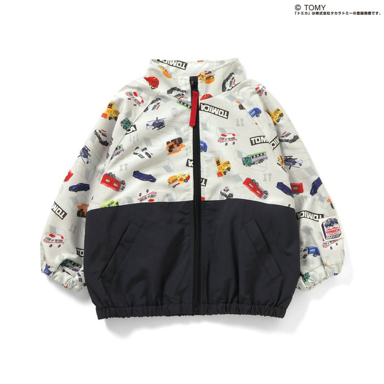 【ブランド:BREEZE】【2026年 春新作商品】人気の「TOMICA」コラボアイテム。軽いリップストップ素材使用のウィンドブレーカー。はたらく車や人気車種の総柄デザイン!季節の変わり目のマストアイテム。いつでも大好きなTOMICAといっしょ!ベビー・キッズサイズのみ。               ★クロネコゆうパケット指定不可