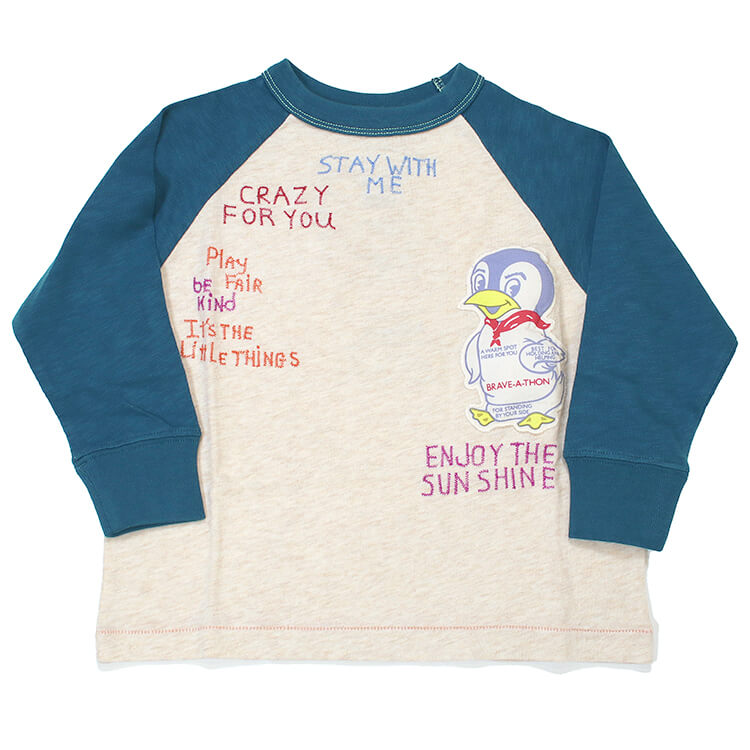 【2026年 春夏新作商品】柔らか天竺素材使用の Tシャツ。肌触りも良く、着心地バツグン。カラフル刺しゅうにペンギンちゃんの綿入りアップリケが可愛すぎる!袖口は、リブ仕様。お揃いコーデにもオススメです。お子様から大人の皆様まで。         ★クロネコゆうパケット指定不可