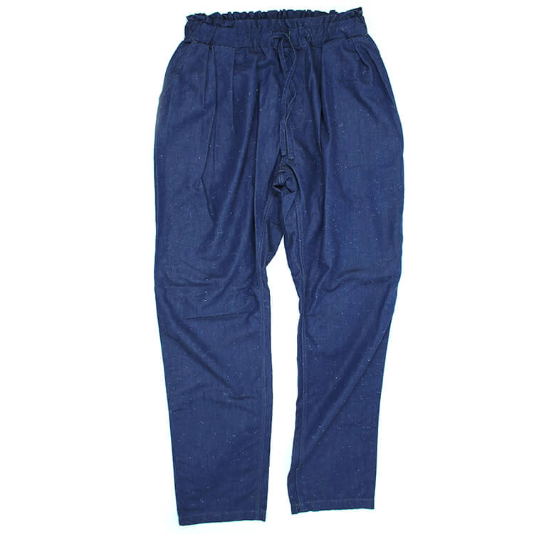 【2026年 春夏新作商品】ライトオンスデニム使用のパンツ。ライトなデニム生地にネップを加えることで表面感をプラスしております。独特の風合いと表情を与え、シンプルながら個性的な印象を与えます。大人サイズのみ。                  ★クロネコゆうパケット指定不可
