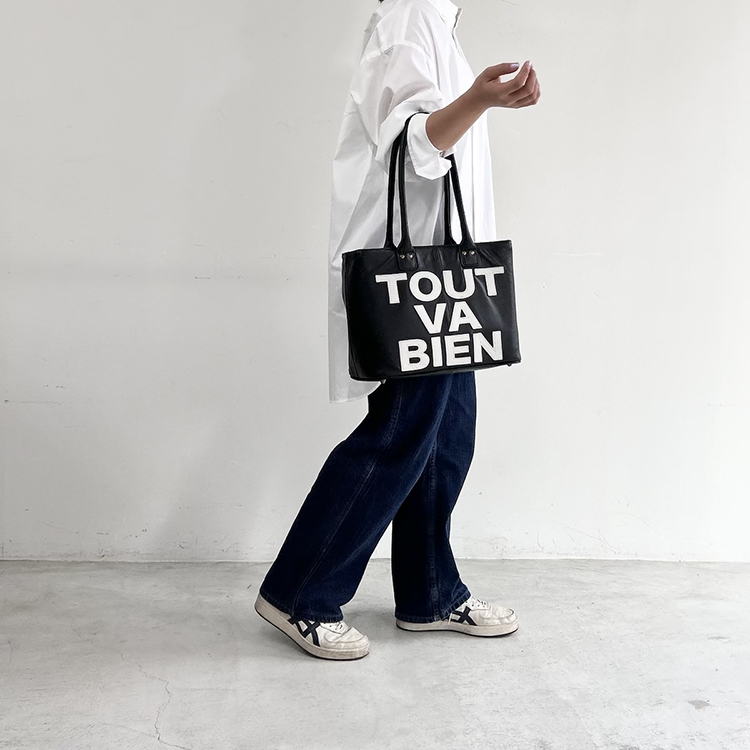 LOGO leather tote bag M (ブラック)