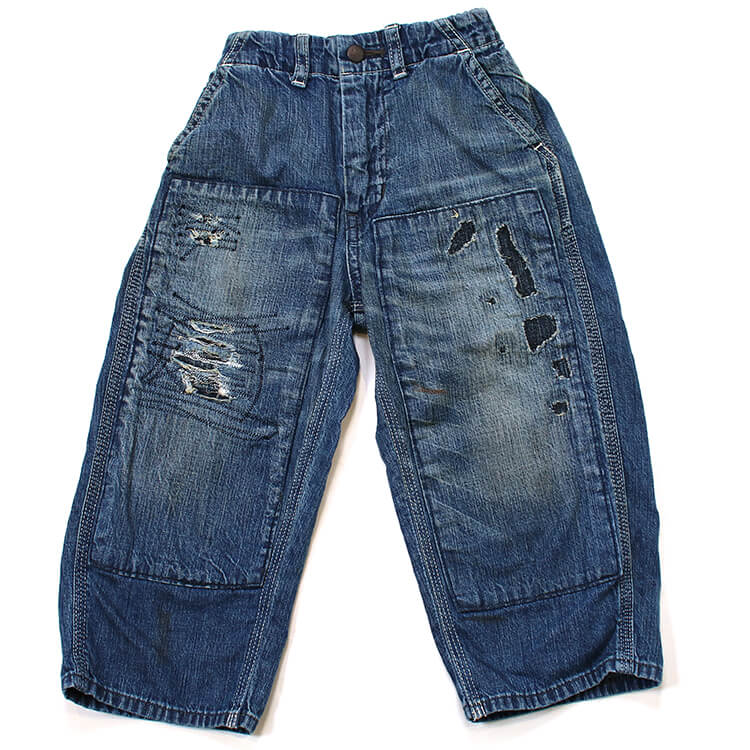 【2026年 春夏新作商品】ジンバブエ産の綿を使ったデニムを使用したペインターパンツ。自然な色落ちと若干の光沢感が上品で飽きの来ない重宝するパンツです。ヒップから下にかけて太めのシルエット。膝部分は同じデニムで補強されています。まるで何年も着ていた様な自然なリメイクも良い感じです。お子様から大人の皆様まで。★クロネコゆうパケット指定不可