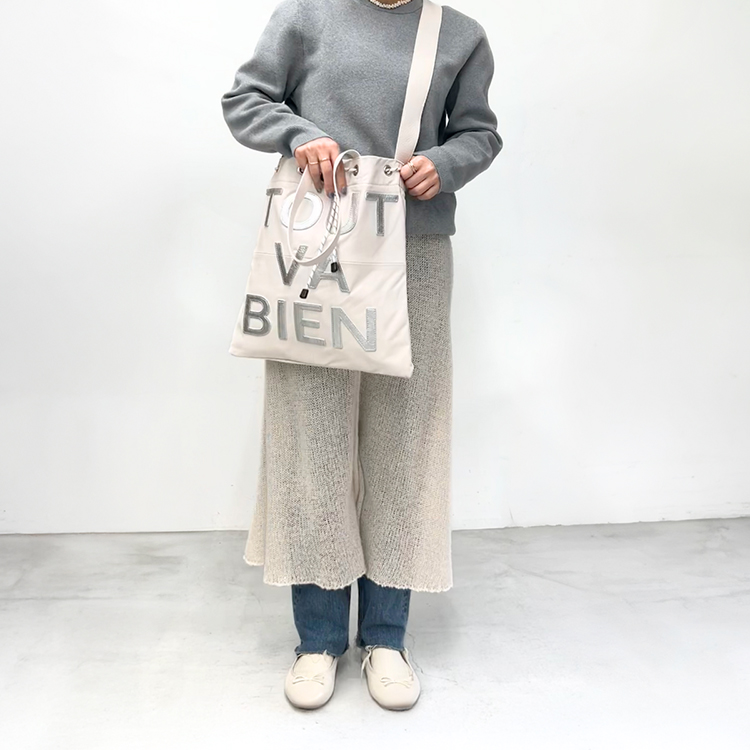 embroidert leather bag L (ホワイト)