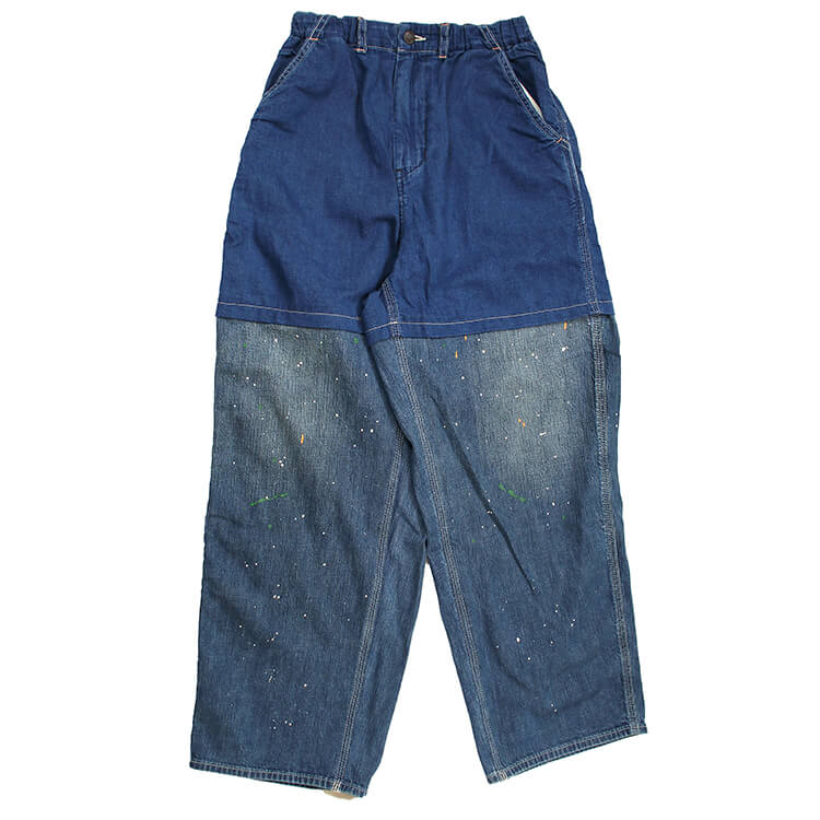 【2026年 春夏新作商品】ショートパンツの下にペインターパンツを重ね着した様なオシャレパンツ。ペンキ汚し加工がポイント。後ろ左のポケットの上に大きめのブランドネーム付き。ゆるっとしたシルエット。大人サイズのみ。                ★クロネコゆうパケット指定不可