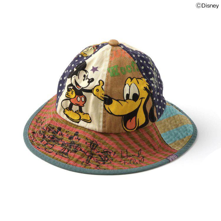 【2026年 初夏コラボ商品】【Disney】「クラシック・ミッキー」のパッチワークデザインがとってもおしゃれなハット。セピアカラーで落ち着いた雰囲気なのに、ポップな総柄で遊び心たっぷり!★クロネコゆうパケット指定不可