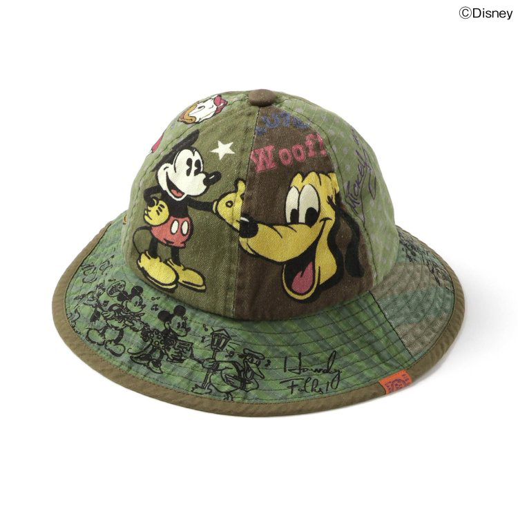 【2026年 初夏コラボ商品】【Disney】「クラシック・ミッキー」のパッチワークデザインがとってもおしゃれなハット。セピアカラーで落ち着いた雰囲気なのに、ポップな総柄で遊び心たっぷり!★クロネコゆうパケット指定不可
