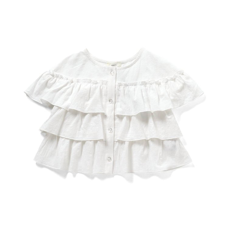 【ブランド:Seraph】【2026年 初夏新作商品】柔らかいドビー素材使用のフリルブラウス。ボリューム感あるフリルが可愛すぎる!前あきなので、レイヤードコーデとしても◎。幅広く活躍すること間違い無し。キッズサイズのみ。             ★クロネコゆうパケット指定不可