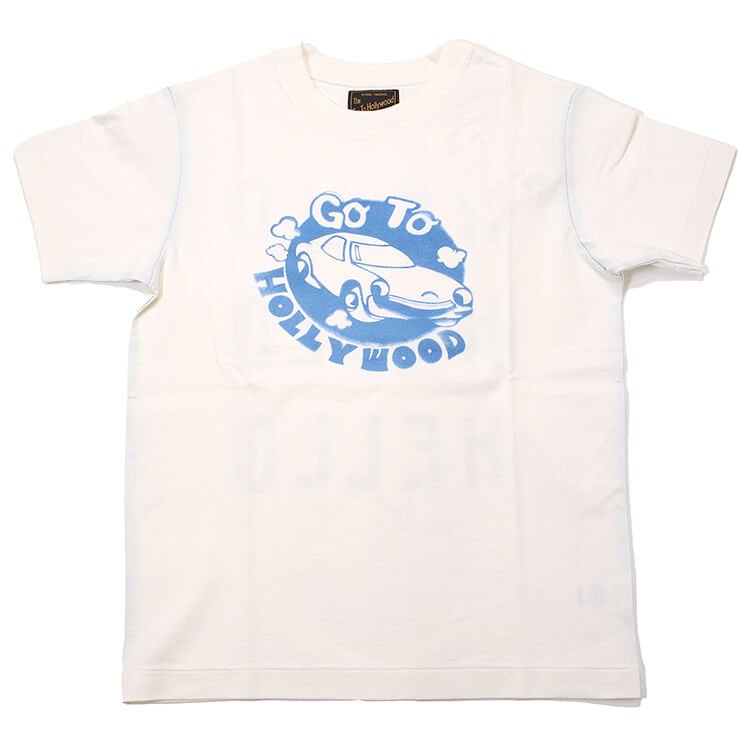 【2026年 春夏新作商品】柔らか天竺素材使用の Tシャツ。肌触りも良く、着心地バツグン。架空の車の整備会社の企業Tをイメージしたデザイン。「これに乗ってハリウッドに行こう!」なモチーフが、合言葉みたいにどーんと真ん中に。このTシャツを着て、気分だけは西海岸の太陽の真っ只中。大人サイズのみ。       ★クロネコゆうパケット指定不可