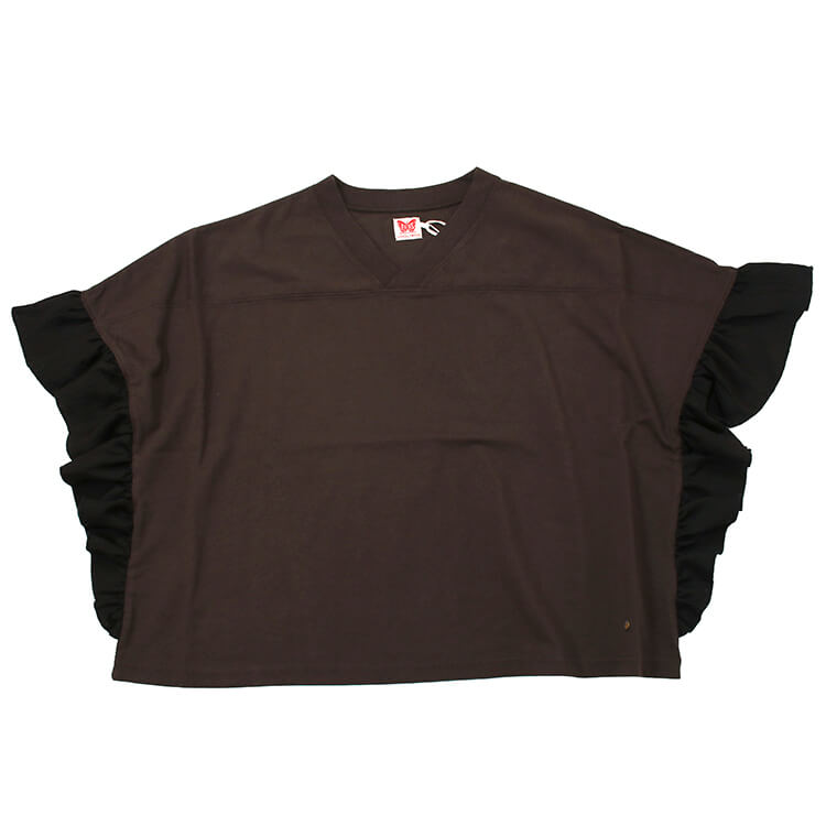 【2026年 春夏新作商品】柔らか天竺素材使用の Tシャツ。肌触りも良く、着心地バツグン。フットボールTのラフなムードに、サイドのフリルにときめく変形Tシャツ。がさっと気負わず着られて、でも1枚でもちゃんとかわいいシルエットです。大人サイズのみ。★クロネコゆうパケット指定不可