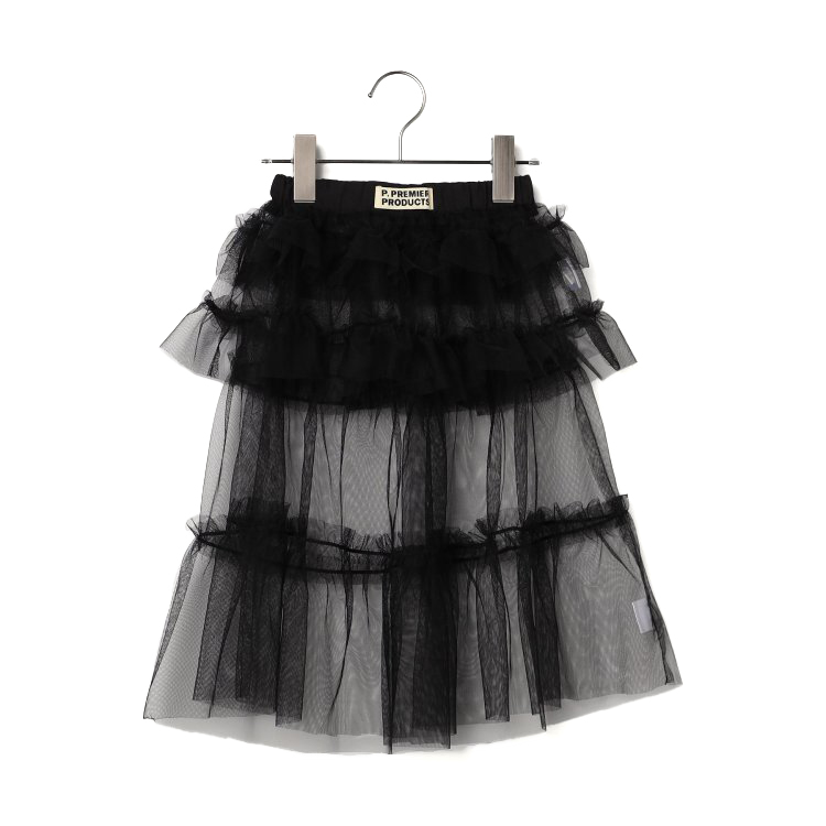 【ブランド:p.premier】【2026年 春夏新作商品】ショート丈とロング丈のスカートがセットになったチュールレイヤードスカート。2枚重ねても、それぞれ単品でも着られる3WAY仕様。いつものコーデにプラスするだけで、ぐっとトレンド感のある印象に仕上がります。ベビー・キッズサイズのみ。            ★クロネコゆうパケット指定不可