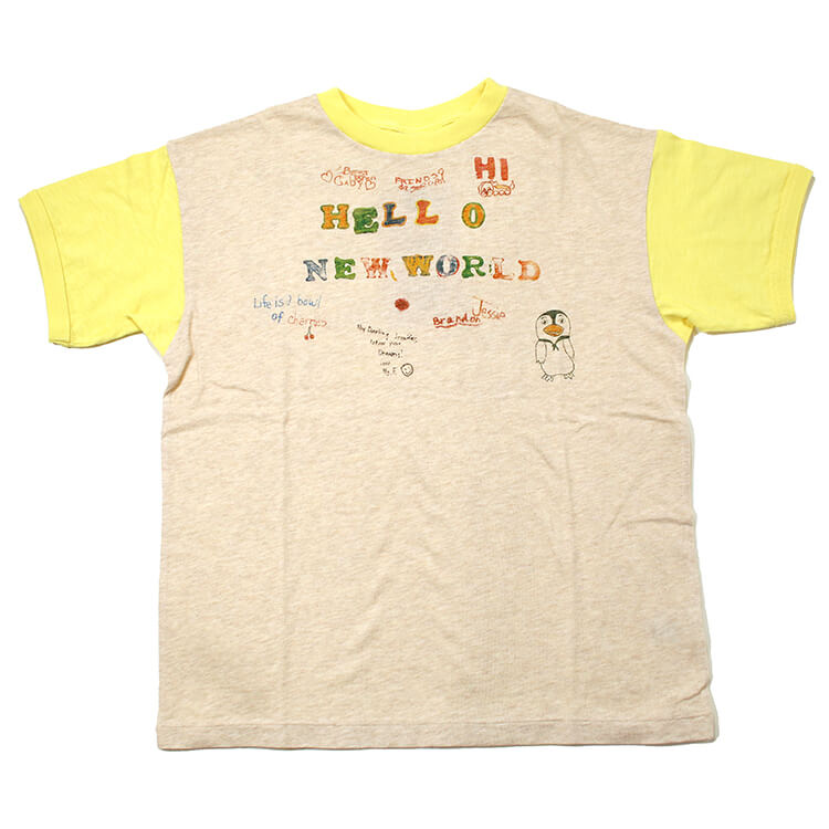 【2026年 春夏新作商品】柔らか天竺素材使用の Tシャツ。肌触りも良く、着心地バツグン。友達と一緒にお絵描きしたという設定のリンガーTシャツ。かわいさ全開と印象も強いのでこれだけでコーデが決まる!シルエットは BIG型。お子様から大人の皆様まで。★この商品 1点のみならクロネコゆうパケット指定 OK(複数注文指定不可)
