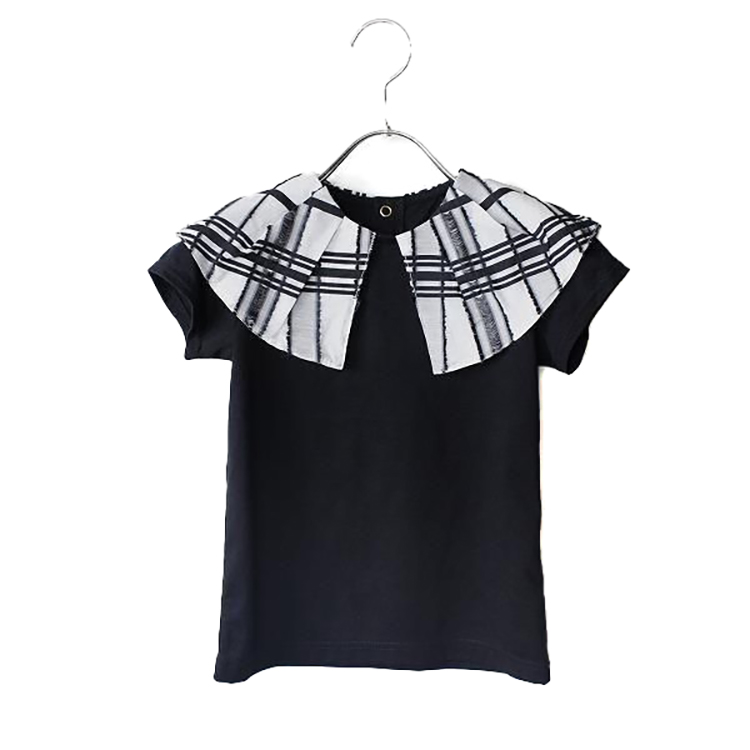 シアーフリンジチェック衿 天竺Tシャツ (ブラック)