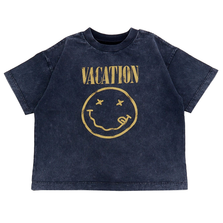 【2026年 春夏新作商品】ケミカルウォッシュ加工で仕上げた、ヴィンテージライクな色あせ感が魅力のTシャツ。存在感のあるバンドT風グラフィックが、コーデの主役になる1枚。ゆったりとしたワイドシルエットで、こなれた着こなしが楽しめます。ベビー・キッズサイズのみ。                      ★この商品 1点のみならクロネコゆうパケット指定 OK(複数注文指定不可)